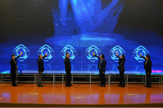 刘前信校长和5位校企嘉宾为“正保产业学院”按下启动键,为“正保产业学院”和“融智·正保智能云财务产教融合实践教学基地”揭牌。