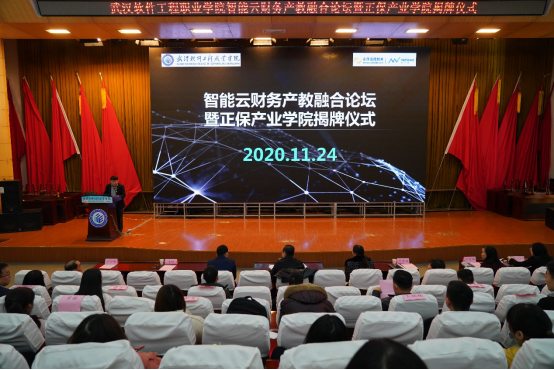 (通讯员:刘珍)11月24日下午,智能云财务产教融合论坛暨“正保产业学院”揭牌仪式在学术楼1号厅举行。校党委副书记、校长刘前信,正保网中网总裁蔡理强、正誉企业集团董事长鲁银花、武汉市代理记账协会会长(江都财税董事长)徐新胜、武汉融智共创科技有限公司总经理罗颖,学相关部门负责人等校企嘉宾共同见证此次盛会。