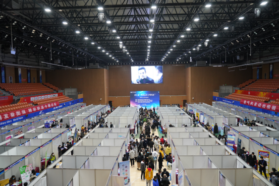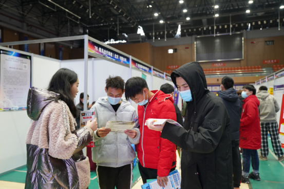 11月24日上午,我校和东湖新技术开发区人事局联合举办的2021届“光谷沃土 职等你来”大型双选会在体育馆举行。147家企业前来武软招揽英才,涵盖机械制造、科技服务、信息软件技术、教育、商业服务等行业,提供371个岗位,拟招聘5807人,吸引1385名应届毕业生来到现场。