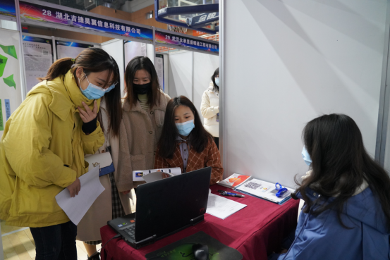马蜂书记来到招聘会现场,详细了解企业招聘需求,热情地推荐我校毕业生;鼓励学生大胆应聘,扎实工作,立足行业精耕细作,力争成为专业领域的行家里手。