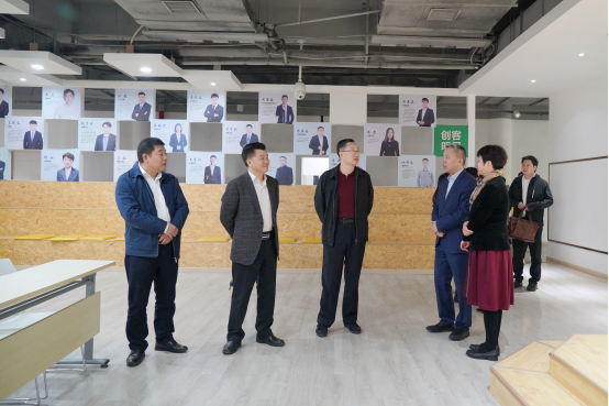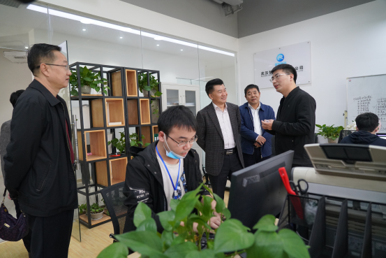 李定君一行来到我校创业学院物联网众创空间,参观各功能区间,了解我校学生创业团队运营管理情况和创新创业工作开展情况。