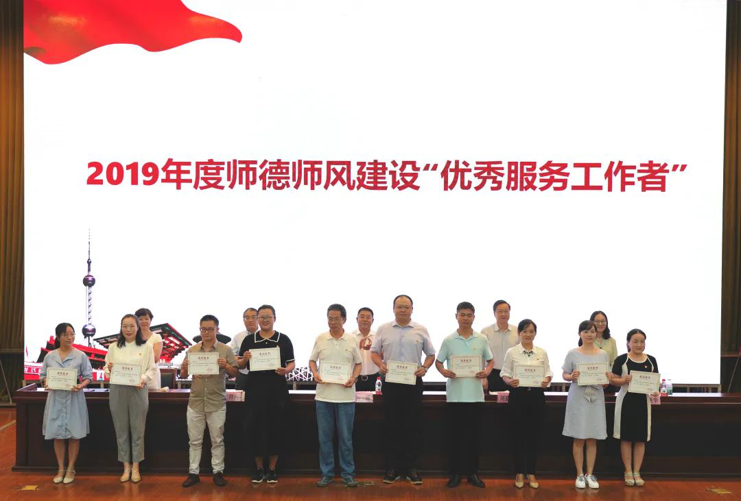 大会在庄严雄壮的国歌声中拉开帷幕。副校长杨京湘、孙美华分别宣读《关于公布2019年度师德师风建设“优秀教师”“优秀服务工作者”评选结果的通知》《关于表彰疫情防控、防汛救灾先进个人的决定》,校领导为受表彰个人颁奖。