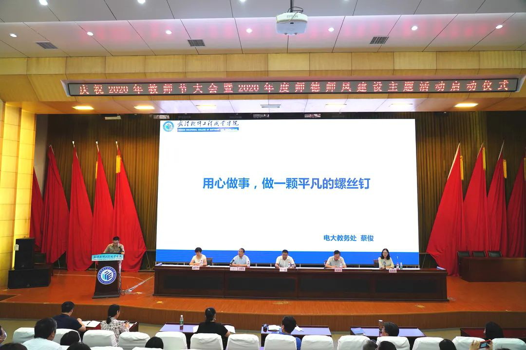 校党委书记马蜂代表学校向受到表彰的优秀教师表示热烈祝贺,并向全体教职员工送上迟来的节日问候。他说,在疫情防控、防汛救灾工作中,我校涌现了一大批敢于斗争、担当奉献的先进典型,他们默默地坚守,出色地工作,真情地付出,赢得社会广泛认可,也为学校赢得了声誉,为他们点赞,向他们致以崇高的敬意。2020年是全面建成小康社会和“十三五”规划收官之年,也是谋划“十四五”规划的关键之年,面对新形势、新任务,他提出三点希望:一要坚定理想信念,聚力落实立德树人根本任务;二要坚持回归本分,聚力抓好课堂教学第一责任;三要注重修德立身,聚力夯实师德师风第一标准,作为国家优质校,对标“双高计划”,积极赋能提质,在高等职业教育改革发展的浪潮中,站稳脚跟,赢得机遇,取得更大发展。