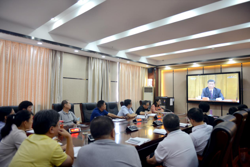 我校领导班子成员,校党委理论学习中心组学习成员集中开展视频学习。