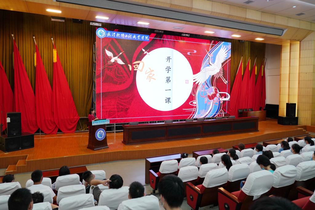 开学第一天,下午四点半,在学术楼1号报告厅和体育馆,千余名返校学子聆听学校精心筹备的“开学第一课”——《回家》。马克思主义学院程伟和罗珺老师带领大家深情回顾武汉战“疫”中,英雄的城市武汉是如何浴火重生、凤凰涅槃,回忆武软师生是如何胸怀大爱、勇挑重任、甘于奉献,彰显责任与担当。