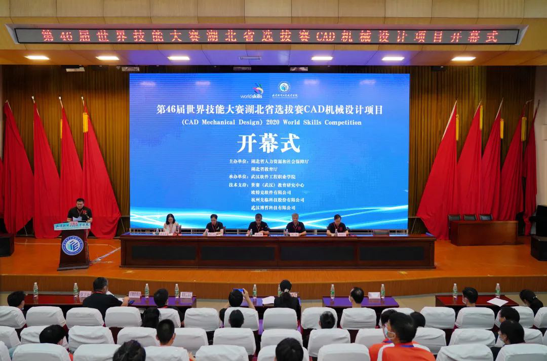 8月8日,第46届世界技能大赛湖北省选拔赛CAD机械设计项目竞赛在我校开幕。下午四点,学术楼1号报告厅,湖北省职业技能鉴定指导中心副主任曾九洲,武汉市职业技能鉴定指导中心主任陶建,第45届世界技能大赛CAD机械设计项目中国教练组组长、第46届世界技能大赛CAD机械设计赛项裁判组组长温广云,我校校长刘前信,副校长孙美华,来自湖北省各地9个代表队的27名参赛选手,以及各领队、教练员,学校相关部门负责人出席开幕式。
