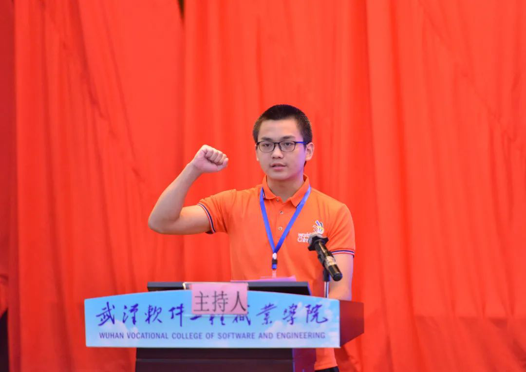参赛选手代表、武汉软件工程职业学院学生徐张林宣誓。