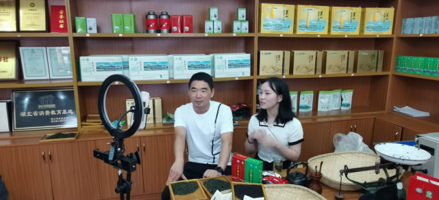 在湖北省第一产茶大县示范基地,利用网络直播带货的方式品香茗,讲茶道,推介英山茶文化,为茶农代言,实属首次。