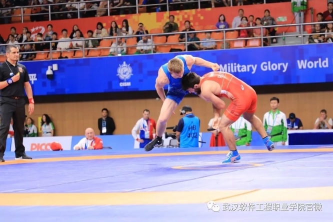 第七届世界军人运动会摔跤比赛现场