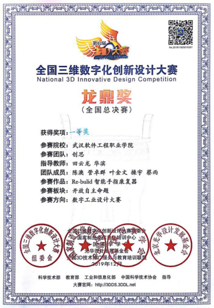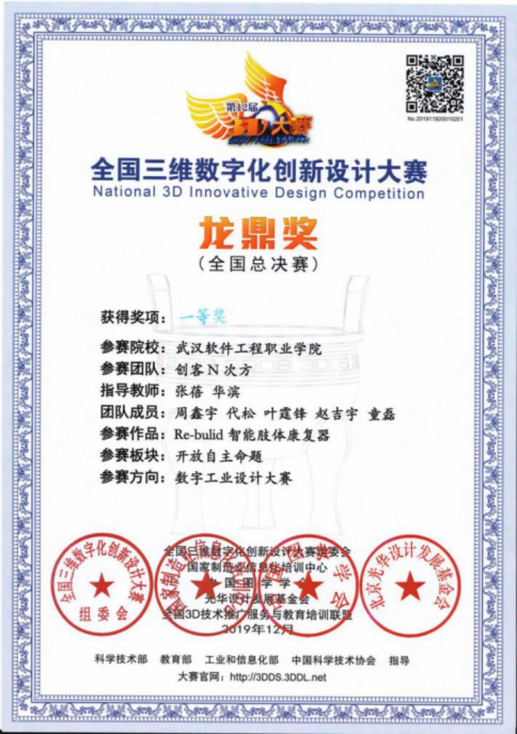 2019年第十二届全国三维数字化创新设计大赛全国总决赛一等奖