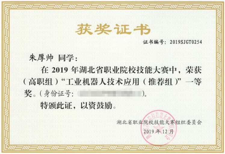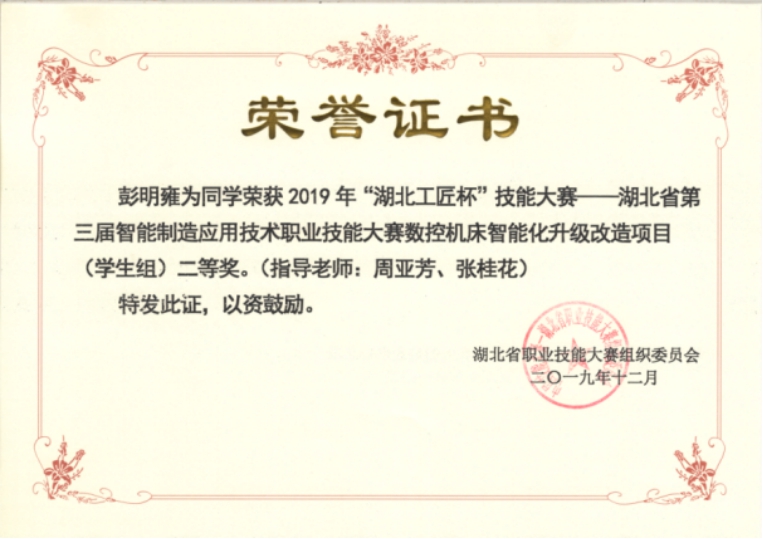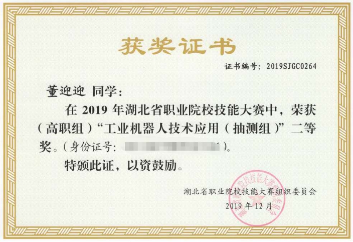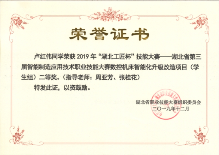 2019年“湖北工匠杯”技能大赛—湖北省第三届智能制造应用技术职业技能大赛二等奖