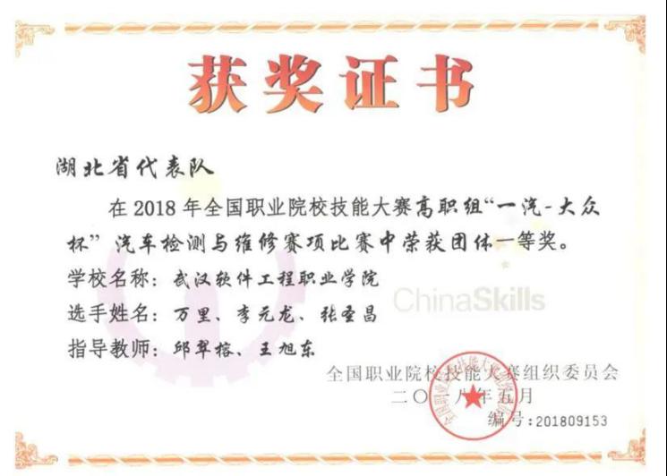学生参加湖北省职业院校技能大赛连续五年荣获湖北省一等奖,2018年代表湖北省参加全国职业院校技能大赛荣获全国一等奖。