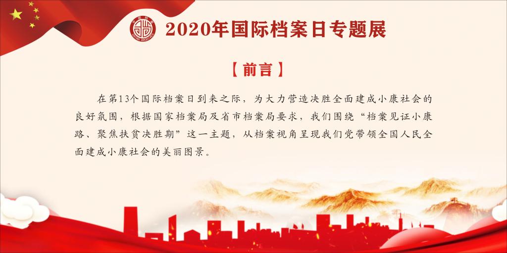 为迎接第13个国际档案日,档案馆制作了以“档案见证小康路 聚焦扶贫决胜期”为主题的线上专题展。