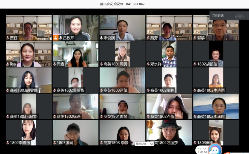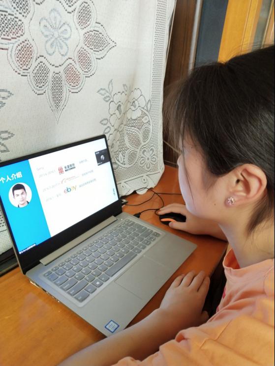 “Through the practical training of a cross-border e-commerce training system, I have become more involved in this field. This training not only enhances my knowledge and improves my skills, but also helps me to bridge the gap between knowledge and practice, which deepens my understanding of cross-border e-commerce.”来自商英1802班的黎菲同学,在视频会议中以英文与老师和同学们分享关于跨境电商的学习实践感悟。就职于阿里巴巴全球速卖通平台的16级商务英语专业毕业生韩可可也参与远程连线,讲述自己从新手“小白”不断摸索成长的跨境电商工作经历。