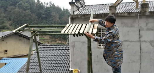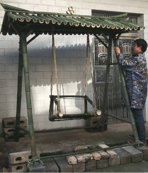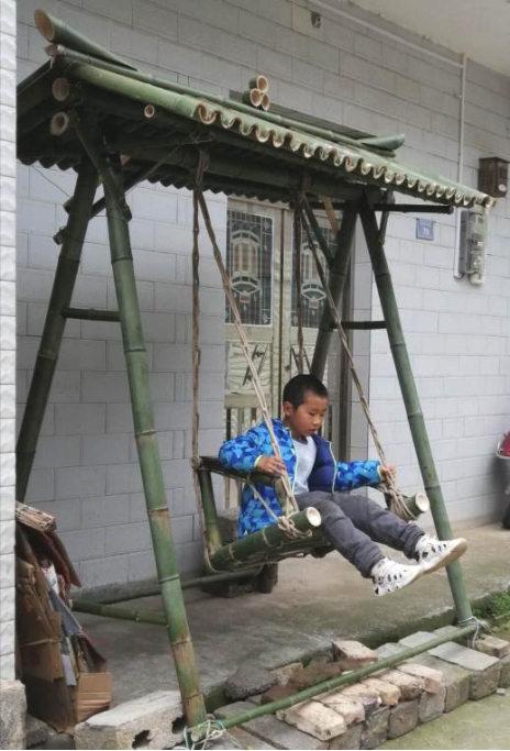 最后把秋千架、座椅、竹瓦顶等部件组装到位,刘鄂南花了近一周的时间,一架风味十足、人见人爱的竹制秋千横空出世。