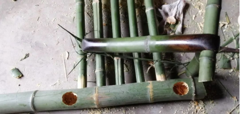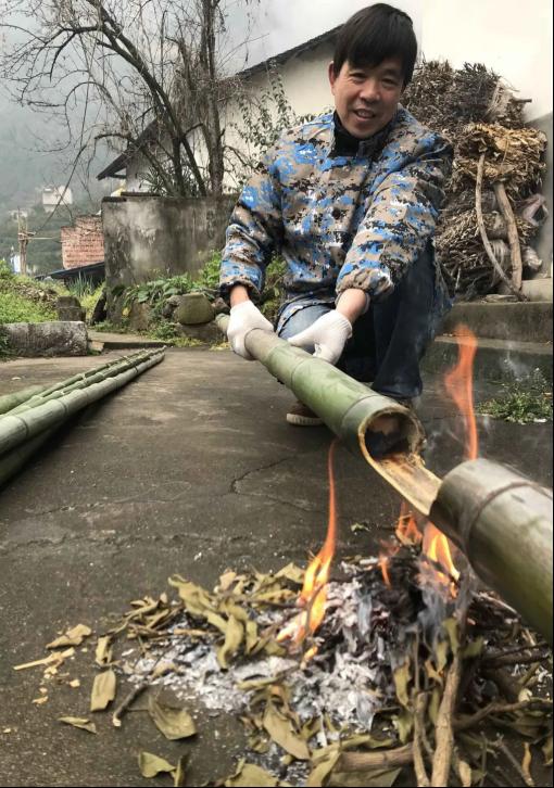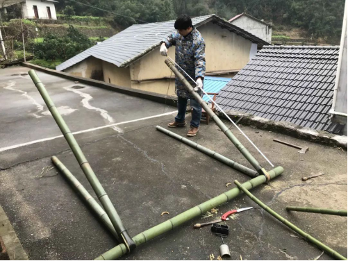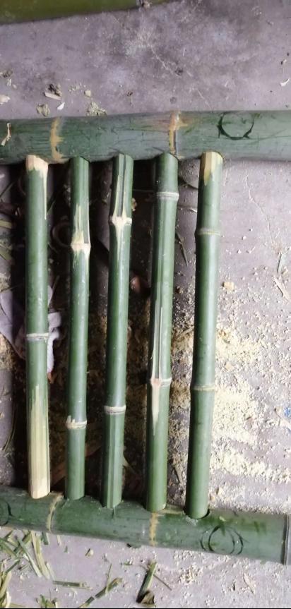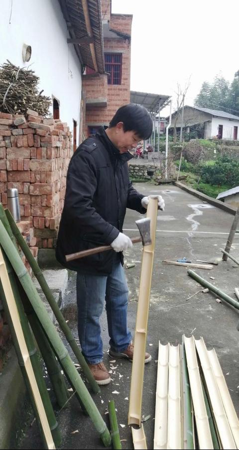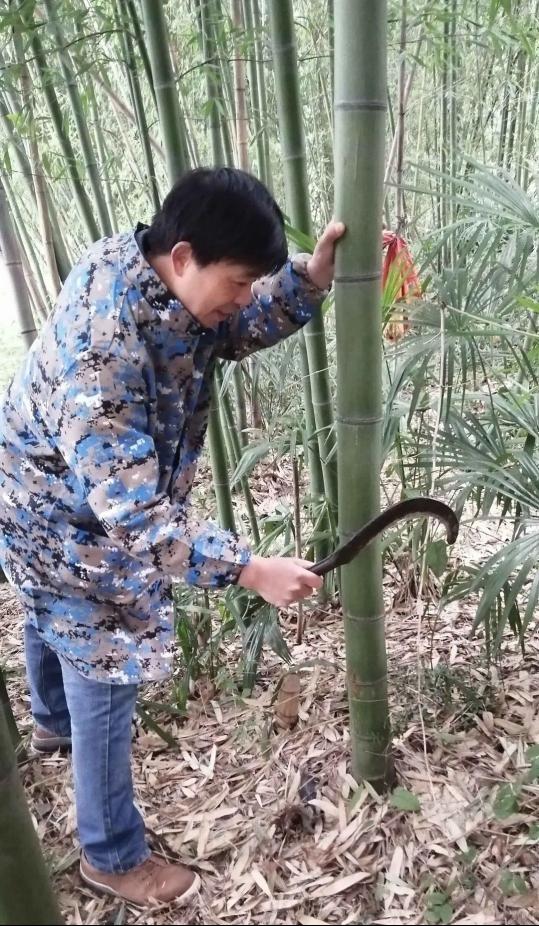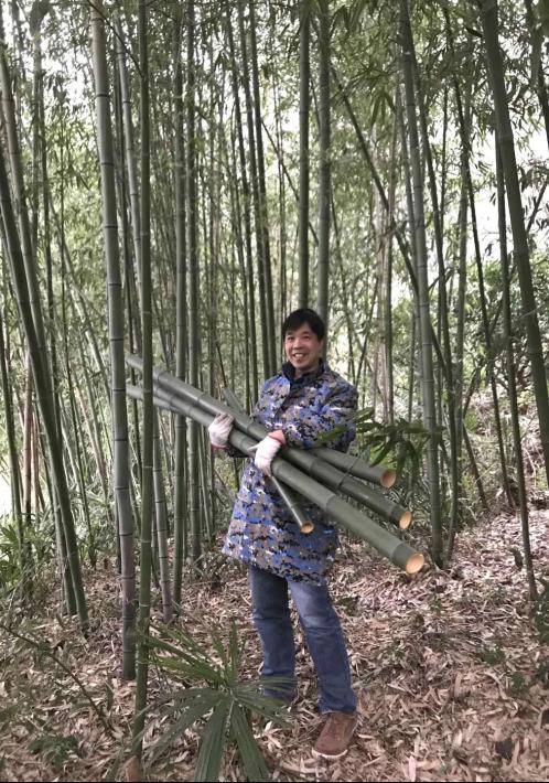 “一竹一木皆有情,一云一峰皆是景。”上完理论课后,刘鄂南拿起柴刀上山,在竹林里一根根挑选那些粗细适合的隔年老楠竹,砍倒、修枝、去叶、打杪,再用肩膀扛下山,根据设计好的长度用锯子下料备用。