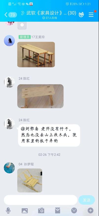 2月28日,为贯彻落实教育部、湖北省教育厅“停课不停教、停课不停学”的要求,学校在云端开学,老师们纷纷变身主播,线上教学。刘鄂南担任环艺1801班的“家具设计”课程的教学任务,每周12课时。作为环境艺术设计专业的核心课程, “家具设计”的教学目的是让学生掌握人与物、平面与立体、形态与构造、材料与加工等关系的理论,培养他们以人为本的设计创造能力、动手能力。课前,刘鄂南了解到,班上28位同学分布城乡各处,学习条件千差万别,部分同学基本工具不全,学习热情不高。