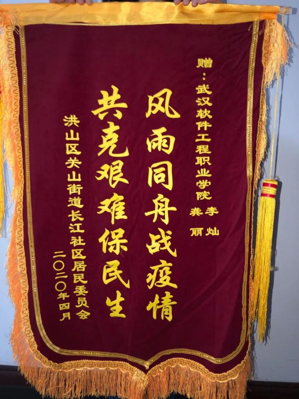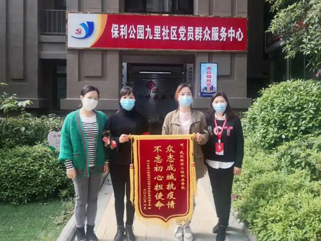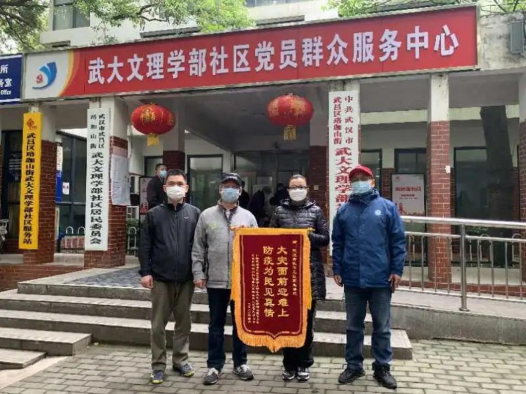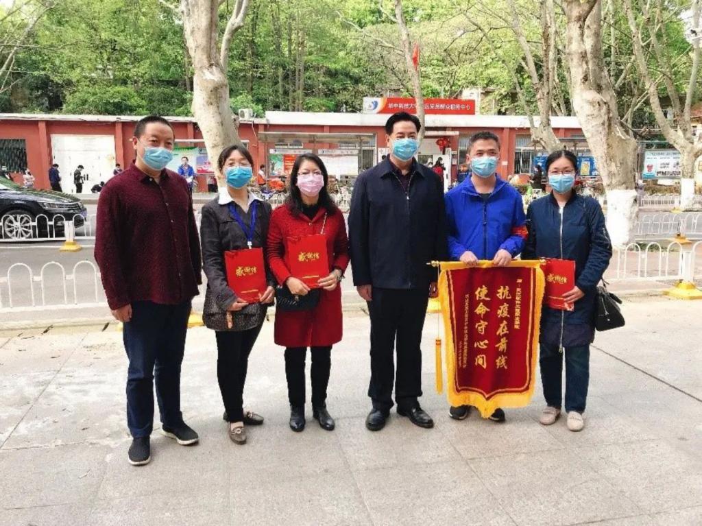 4月8日,华中科技大学校长李元元来到华科大社区服务中心,为我校送上一面印有“抗疫在前线,使命守心间”的锦旗和一封感谢信,向武软战“疫”队对华科大社区所做的贡献表示赞赏和感谢。
