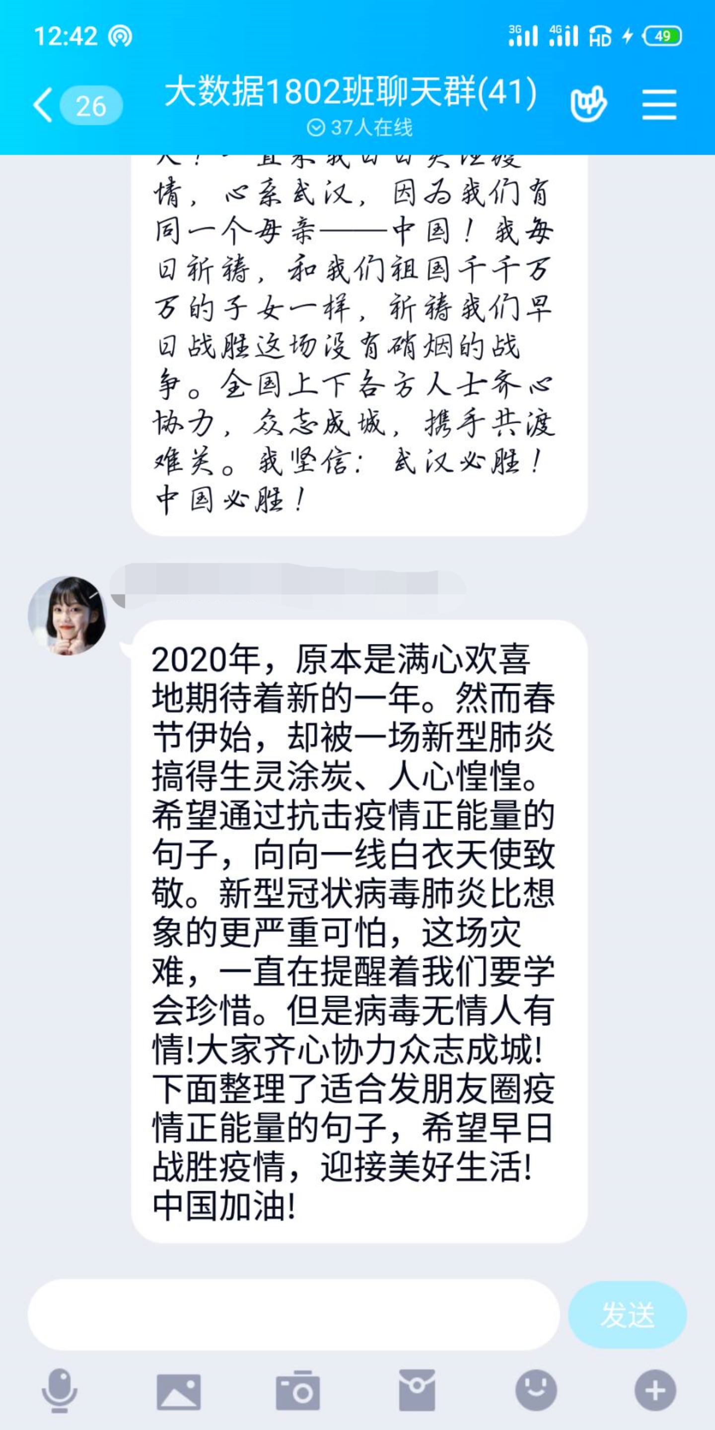 数媒1801班“同心防‘疫’,我有信心”主题“云班会”