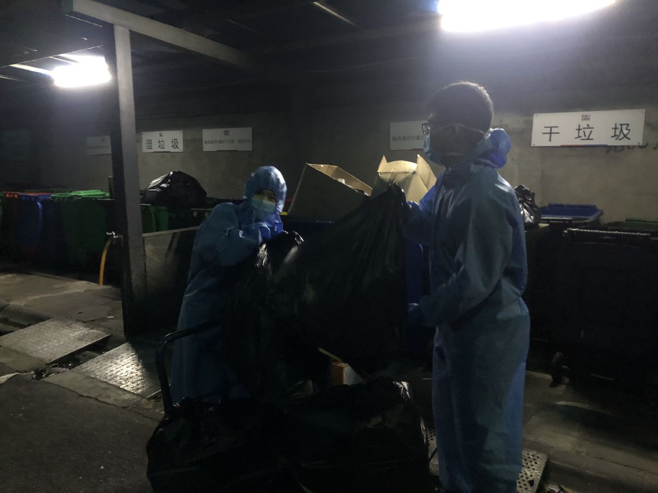 山水S酒店主要接待的是吉林医疗队和武汉侨亚博爱康复医院的医护人员。邓曼和同事们每天的主要工作是清理酒店24-30层的生活垃圾。