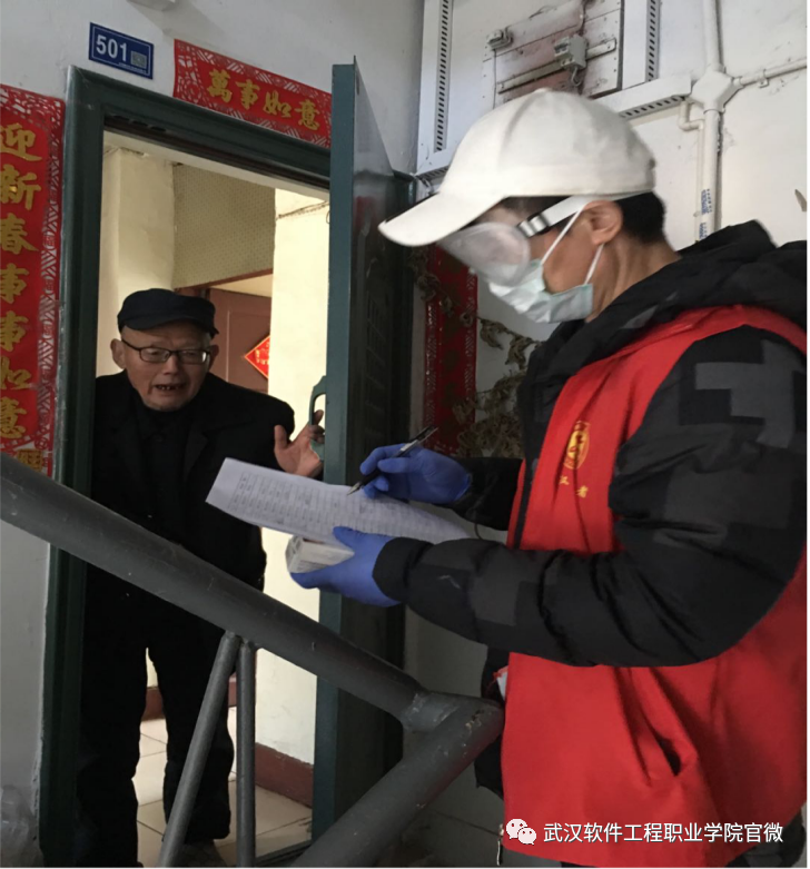 2月15日,在汉教职工李洪斌、邓永炎、许莉、黄晋、韩昊、胡晓飞等第一时间到就近社区报到,参与防疫工作。副主任李洪斌下沉至劳动街公园社区,除完成“四类人员”排查、门岗值守、爱心菜整理派发等工作外,还主动承担无人值守小区的夜班门岗值守任务,从深夜到天明,为每一个回家的抗疫工作者做好记录。日常排查体温和了解生活需求时,每天都要爬楼梯,他一户户敲门,有时和年纪大的居民沟通,要扯着嗓子重复多遍,一趟下来已是满头大汗。