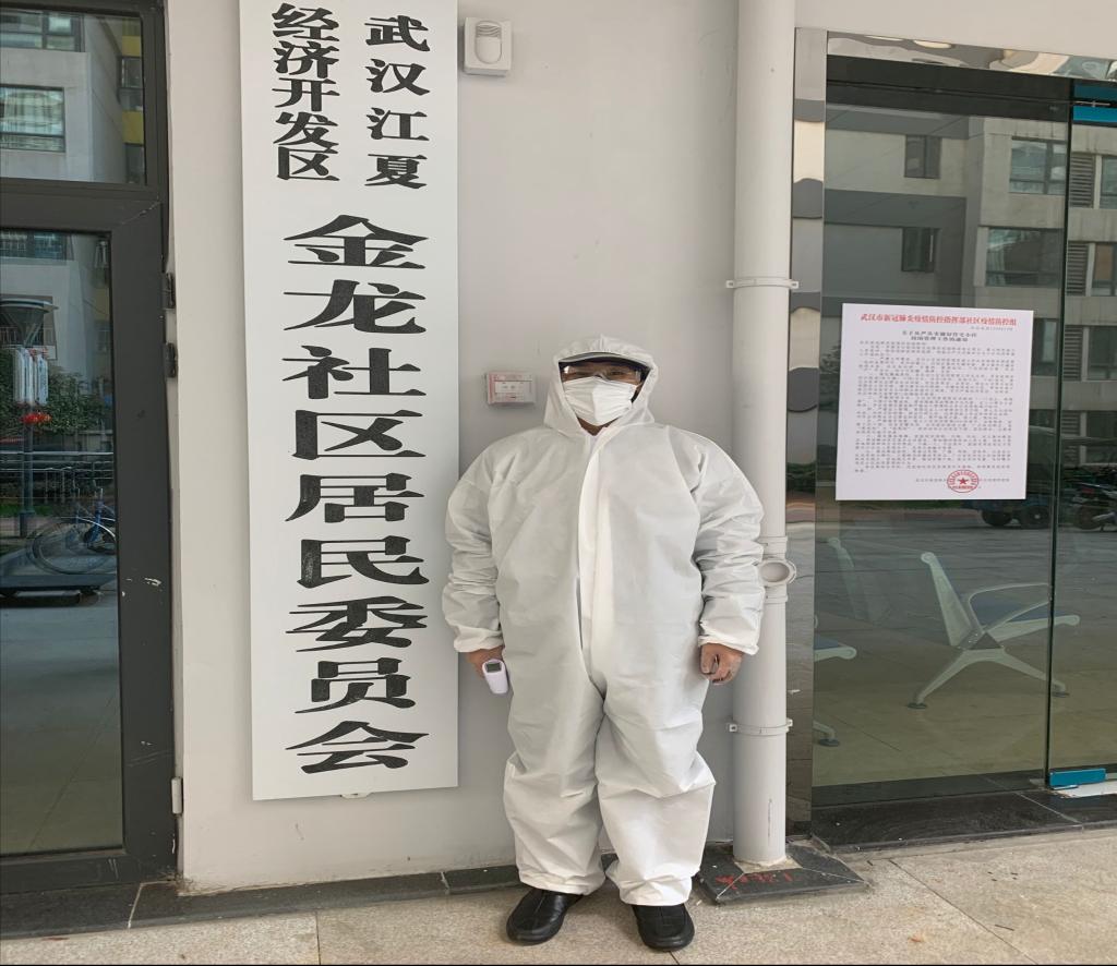 返汉后,他在金龙社区开展防疫知识宣传、入户排查及采购配送等工作。5栋楼、300余户、近1000余人,两人一组,走街串巷、地毯式排查,他确保“不漏一户、不少一人”。他负责社区团购,每天下午1点开始,要完成500份中百团购菜的统计和分发,忙起来几乎没有喝水和上厕所的时间。他还对接企业,为学校隔离点提供一次性雨衣、酒精等物资支持。