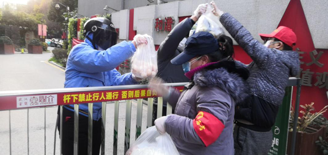 在江岸区铁南社区值守门岗的杨瑾,耐心劝导和安抚急于外出、情绪失控的居民。值守的同时,她还帮忙分发团购物资。她站在那里一个个的叫号,让居民保持一米间隔,把蔬菜水果送到居民手中。“我蛮理解你们的”,听到居民的谢谢,她觉得辛苦付出很值得。