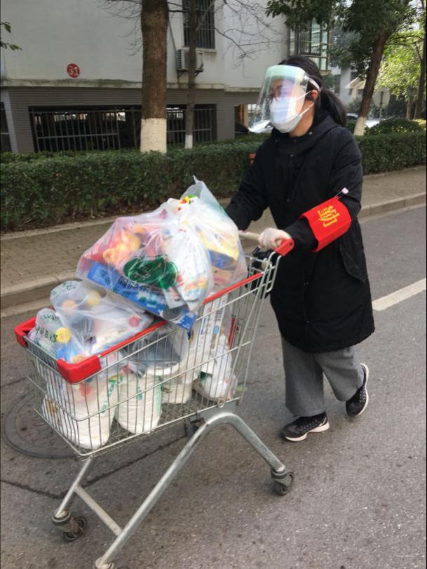 下沉到华中科技大学社区的江平离家较远,经常在校园露天长凳上吃饭,下雨就躲在屋檐下吃饭。她先是电话排查,每户人数、租户去向、身体状况等都记录好;再是拉网式排查,确保居民信息登记无误;最后对前期未落实的人员进一步上门排查,不漏一人一户。她每天还为居民配送蔬菜、水果、调料、生活用品、外卖等。不熟悉环境,就对着地图找到每栋每单元,走冤枉路是常事。但她觉得能为保卫家园作贡献,很值得。
