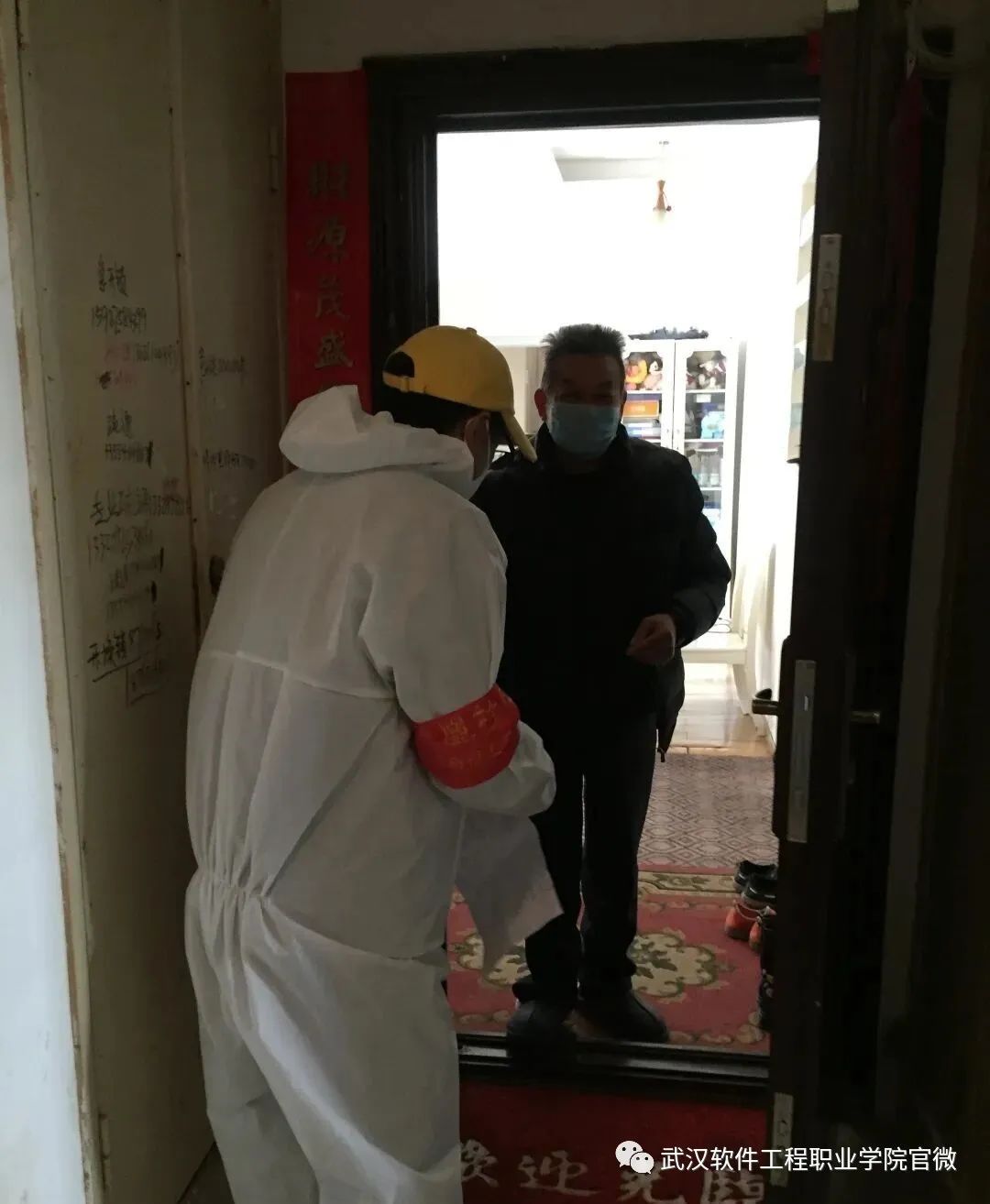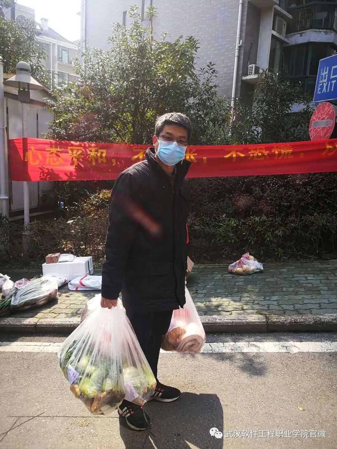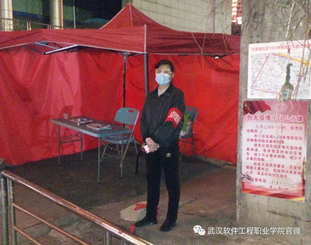 实训室的张泽奎老师身在恩施巴东老家,总想回武汉做点什么。接到学校号召后,他立即逐级办理回汉通行证,经过多方努力、反复沟通和解释,他按指挥部要求把妻子孩子留在老家,只身一人自驾8小时回汉。隔离14天后,他立即投入关山街道保利社区支援工作,参与楼栋值守、入户排查、物资运送、医疗护送。虽然辛苦,但他认为能为武汉抗疫出一份力,很值得。