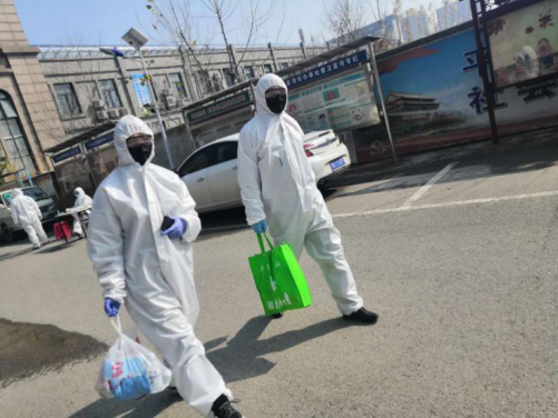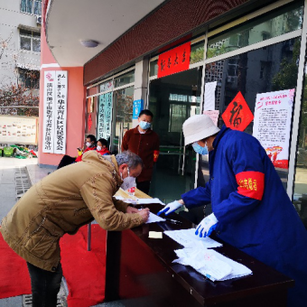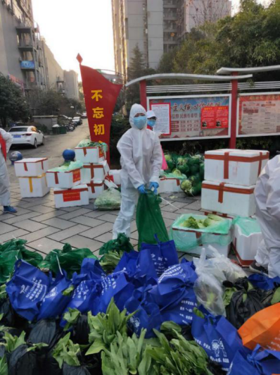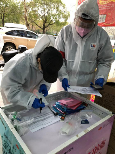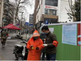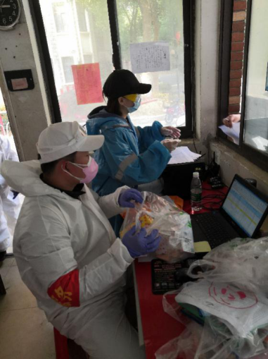 2月15日,朱智泉院长、肖素美书记又积极响应学校号召,下沉到社区参与防疫工作。起初,他们主要承担小区值守工作,每天守着小区大门长达10多个小时,对出入人员进行登记和体温测量。朱智泉院长所在的和美社区网格员因病离岗,他迅速挑起重担,担起网格内疫情疏导和居民生活物资团购等工作。和美社区老旧住宅小区多,老年人占比大,管理难度大。从疫情防控知识宣传到采购、分发居民团购的蔬菜、粮油等生活物资全由他一人完成。他分身成宣传员、联络员、配送员、收银员等多面手,不分昼夜地忙碌在社区防疫一线。实在忙不过来时,他还会叫上妻子一起,夫妻俩相互帮忙、互相鼓劲,困难相继解决,称赞不断传来。他说:“作为党员,理应站在最前面,再苦再累也值得。”