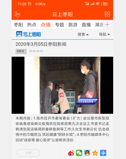 每天早出晚归积极投身于防范新型肺炎劝返点志愿工作的他,用自己不怎么标准的普通话进行广播录音,还根据森林防火需要对宣传内容进行了修改,帮村委会大大减轻了工作压力。家人看他服务乡亲的意愿如此坚定,也都参与进防疫工作,来用实际行动支持他。3月5日枣阳电视台还报道了杨卓越一家人一起抗疫的事迹。