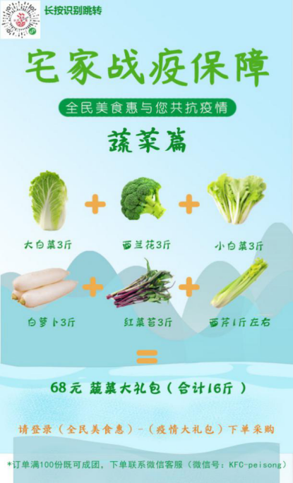 武汉封城之初,因公共交通停摆,居民出门购物成了难题,生鲜物资供应也较为匮乏。此时一直关注武汉疫情的电商1951班陈龙同学,TG电商创业团队队长,迅速联系“全民美食惠”平台供应商,沟通蔬菜等食品采购事宜,同时动员团队伙伴,立即开工,恢复平台运营并开展社区团购业务,为武汉人民的“菜篮子”贡献一份力量。