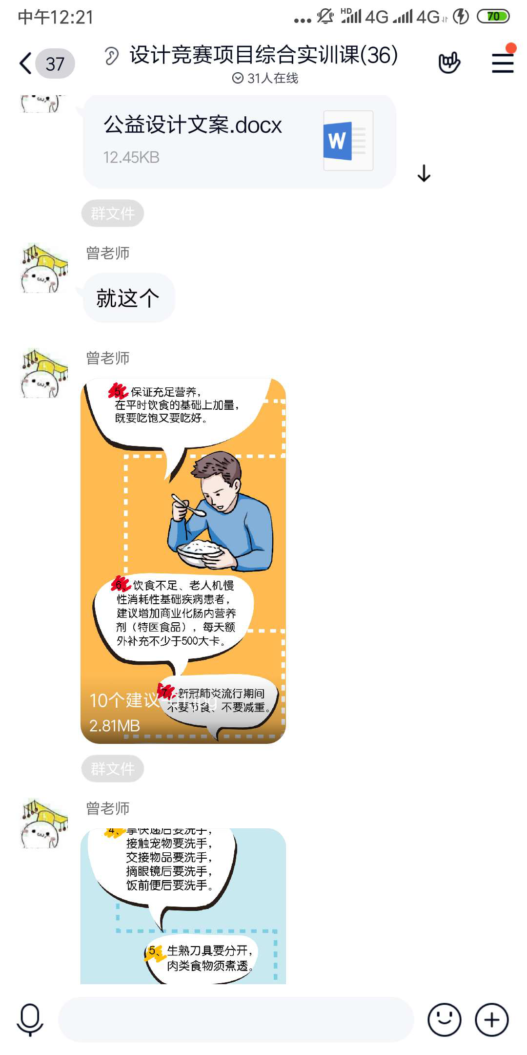 团队中,叶蕾和曾芸老师要兼顾社区志愿服务和线上教学工作,白天在社区分菜、跑腿,回家顾不上休息,立刻坐到电脑前变身“十八线主播”,给学生线上授课。公益设计只能挤出晚上睡觉的时间来完成,工作到凌晨两三点是常有的事。