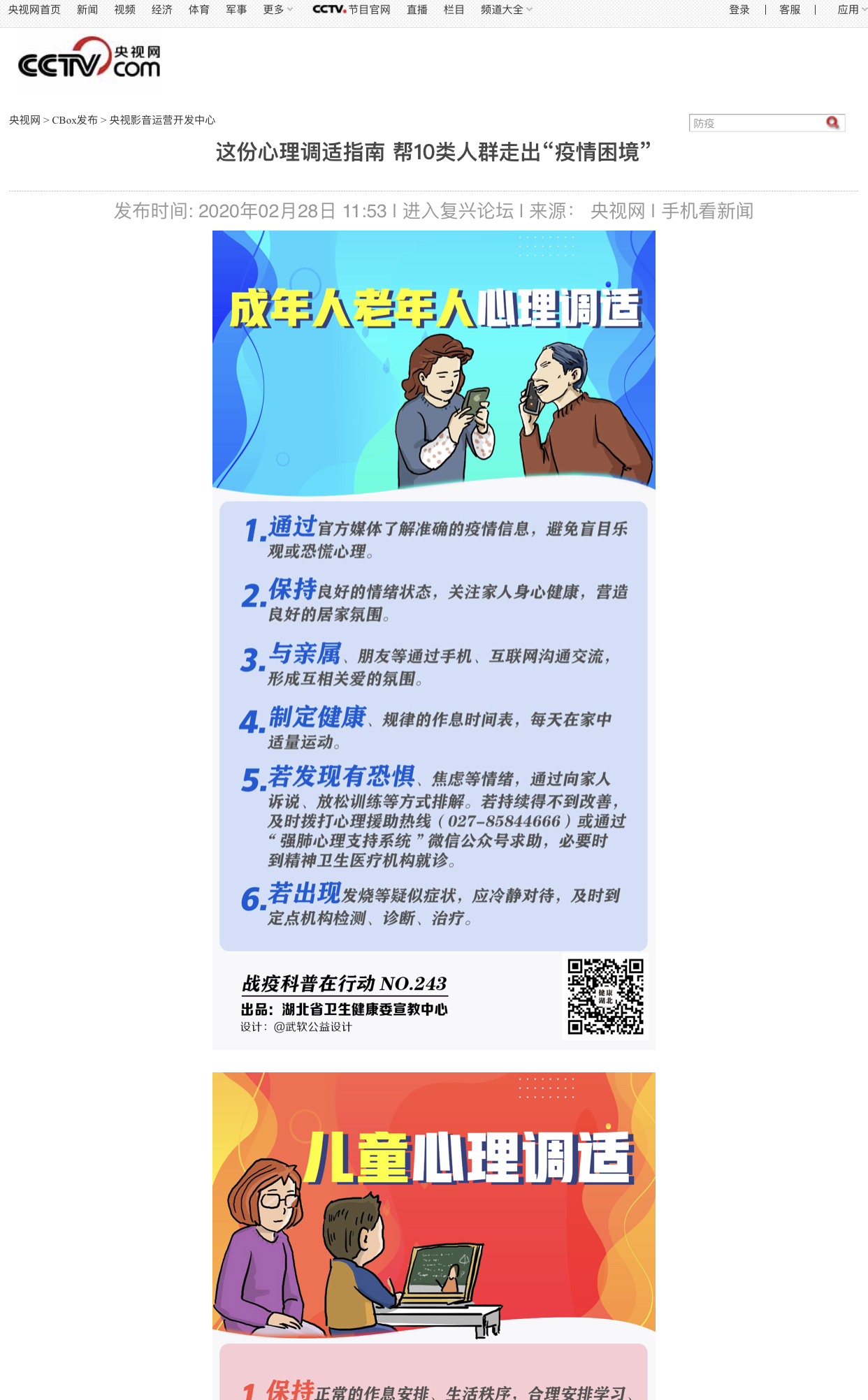 3月6日,湖北省卫健委网站发布《权威科普!复工在即,不同人群如何实施精准防控》宣传画册,很快被国家卫健委官网、人民网、央视矩阵平台等众多权威媒体转发,为全国各地各类人群提供抗疫指导。该作品由我校师生组建的“武软艺术公益”团队设计,此前团队已完成《新冠肺炎防控科普指南》《疫情期间各类人群心理调适指南》等多个公益宣传手册和海报。