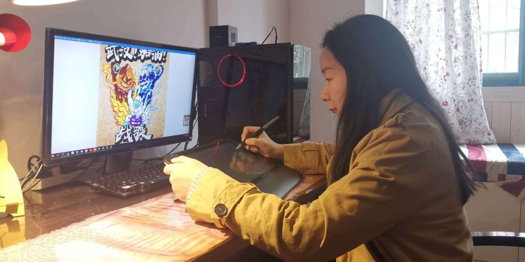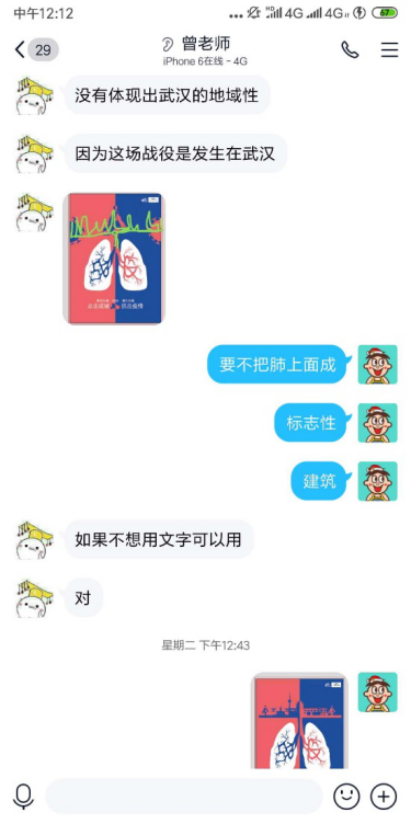 从1月24日组建到今天,艺术传媒学院叶蕾、曾芸、南方等老师和5名学生组成的“武软艺术公益”团队,已完成115张设计,在参加湖北省卫健委公益设计的团队中,是出活最多的一个。