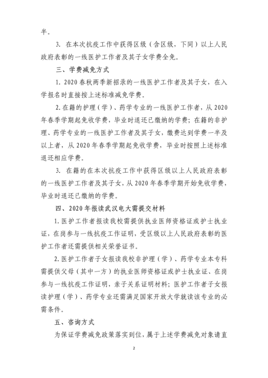 疫情发生以来,学校一直牵挂着奋战在抗疫一线的同学们,第一时间对各大医院的同学工作情况进行跟踪报道。得知一线抗疫的学生的子女也想报考我校后,校领导当即表示“培养人才、服务地方经济社会发展是学校的使命,疫情期间,逆行的电大学子遍布全市各行各业,特别是广大医护学子,他们无私奉献、忘我工作、救护生命,学校要以实际行动支援他们,向他们致敬!”“抗疫一线医护工作者就读护理和药学专业的学费全免,就读其他专业的以及他们的子女学费减半”。