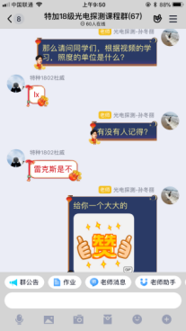 为了提升学习效果,创设更加真实的课堂情境,老师们各展身手:袁园、阮梦雄、刘庆老师积极尝试直播教学,并分享直播中签到、布置任务等经验;舒李俊老师课前布置思考题和作业,引导学生先进行视频预习,课中通过穿插学生抢答、点名提问的方式提高学生的专注度、参与度;张赛老师注重培养学生的发散思维,引导学生主动思考问题。教师团队整理出一套课前重难点导学、课中直播答疑、课后测试作业的线上教学模式,帮助学生能高效地进行线上学习。