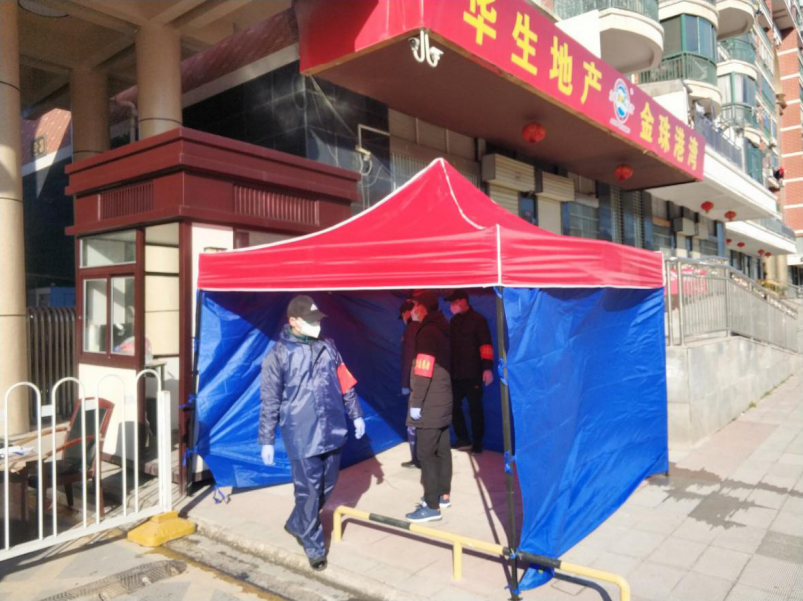 省荣军医院教师小区正处在新老物业交接期,仅有两名保安。5栋房子中,2栋是发烧门诊荣军医院的职工集资房,共14个单元196户,外加两栋一楼车库改建房30余家。夜晚门岗值守的工作量不小。居住在此的荣军医院二线人员可以回家,深夜、清晨均有较多职工进出。在酒店居住的荣军医院一线人员无法回家,还需要给他们的家属提供生活服务。