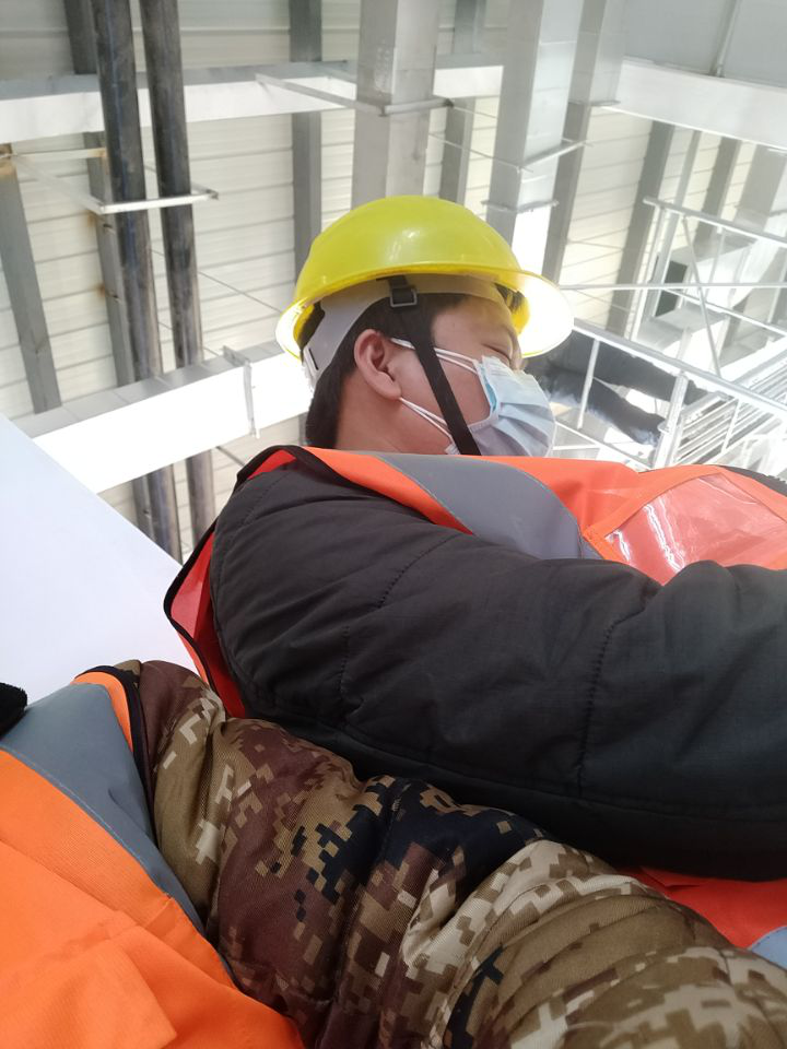 到达雷神山医院的施工现场,顾不上休息,一群人通宵达旦地干起来。马智顺主要负责给病房做吊顶和包角,除此之外,他还参与了隔离房间的拼装和氧气管道的组装。为了尽快完成雷神山医院的建设,工人们每天都要工作16-20个小时,有时还会通宵。