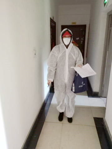 5天前,金学平的眼睛就发炎了,他没有太在意,想着睡一觉就能好。套上袖标,戴好口罩,忍着眼睛的灼烧与疼痛,他在门岗认真执勤,从早到晚忙个不停,有时晚上9点多才回家。除了做好门岗值守工作,他还入户排查、核实数据、统计需求、帮忙团购菜品、给居民买药送药等。50多户人家,他挨家挨户敲门询问:“您家几口人?体温多少?” 遇上电话不接、敲门不开的住户,晚上看到房间亮起灯,他又赶紧前去上门排查。