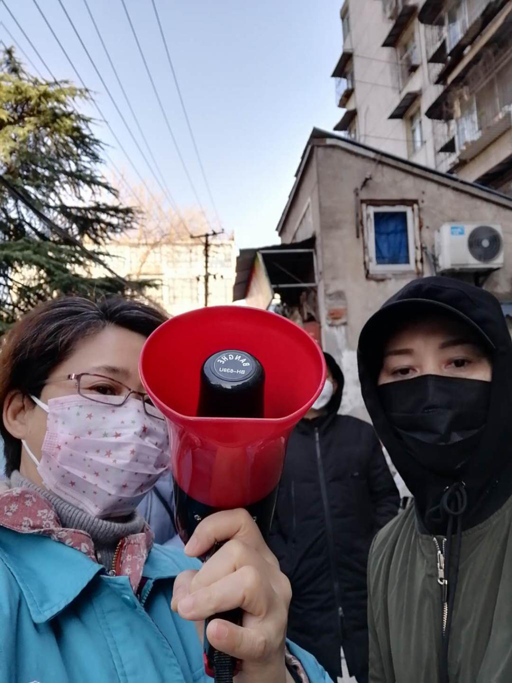 喻萍芳老师作为首批下沉社区的老党员,在腰部扭伤的情况下,连续在社区奔走一周,她拿起小喇叭,在社区巡逻,宣传疫情防控。因为是老小区,部分老人信息不灵通,靠这样在日间时段反复播放,让更多居民足不出户就能时刻了解健康知识。