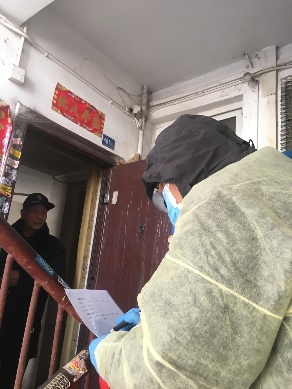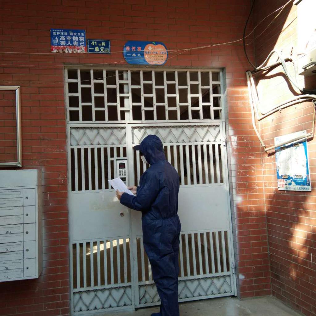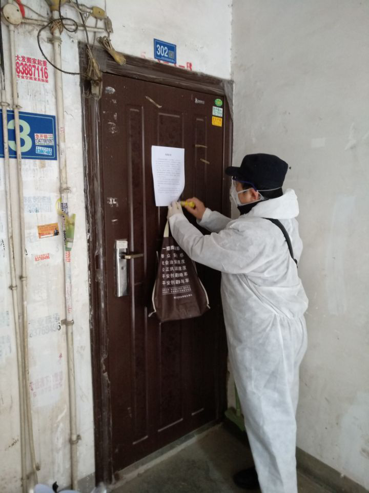 人文学院党总支书记李桂园和教工第一党支部党员梁俊作为首批主动报名参与抗疫工作的志愿者,下沉洪山区葛光社区,对宇峰小区5栋居民近200名住户逐一进行线上排查。他们对每家每户的现居住人数、外地返汉人员人数、身体状况及体温等情况都进行了归档记载,对一直无法联系上且信息掌握不全的住户进行线下拉网式排查。由于老旧小区没有电梯,他们便一栋栋、一层层、一家家敲门,隔门询问、登记、张贴。