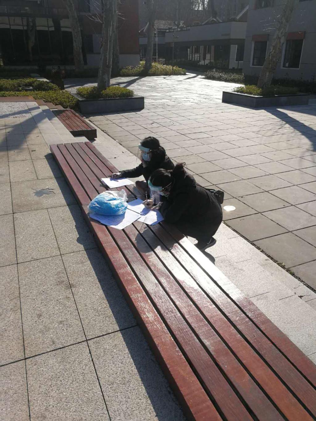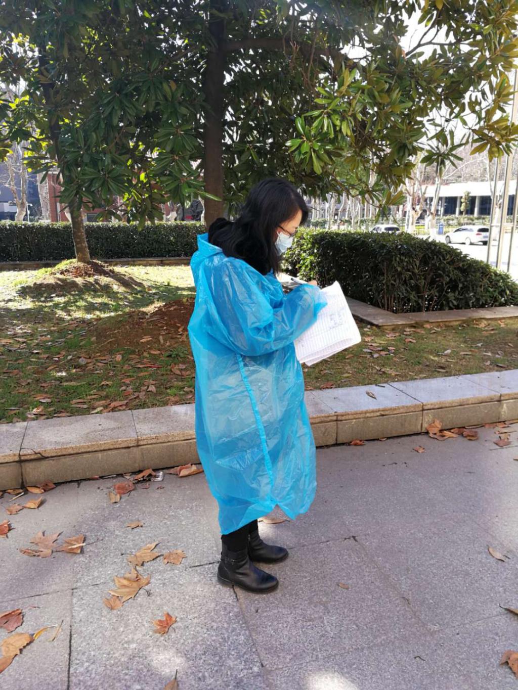 教工第二党支部书记陈红在得知第一批下沉到华中科技大学社区的老师有困难后,立刻顶替上,每日步行三四十分钟前往服务社区。由于社区办公位置有限,为防止社区工作人员过于密集,寒冷的天气他们在户外长廊一干就是一天,协助社区发布防疫公告,对校内出租户逐一电话排查等,认真做好每一件琐碎小事。