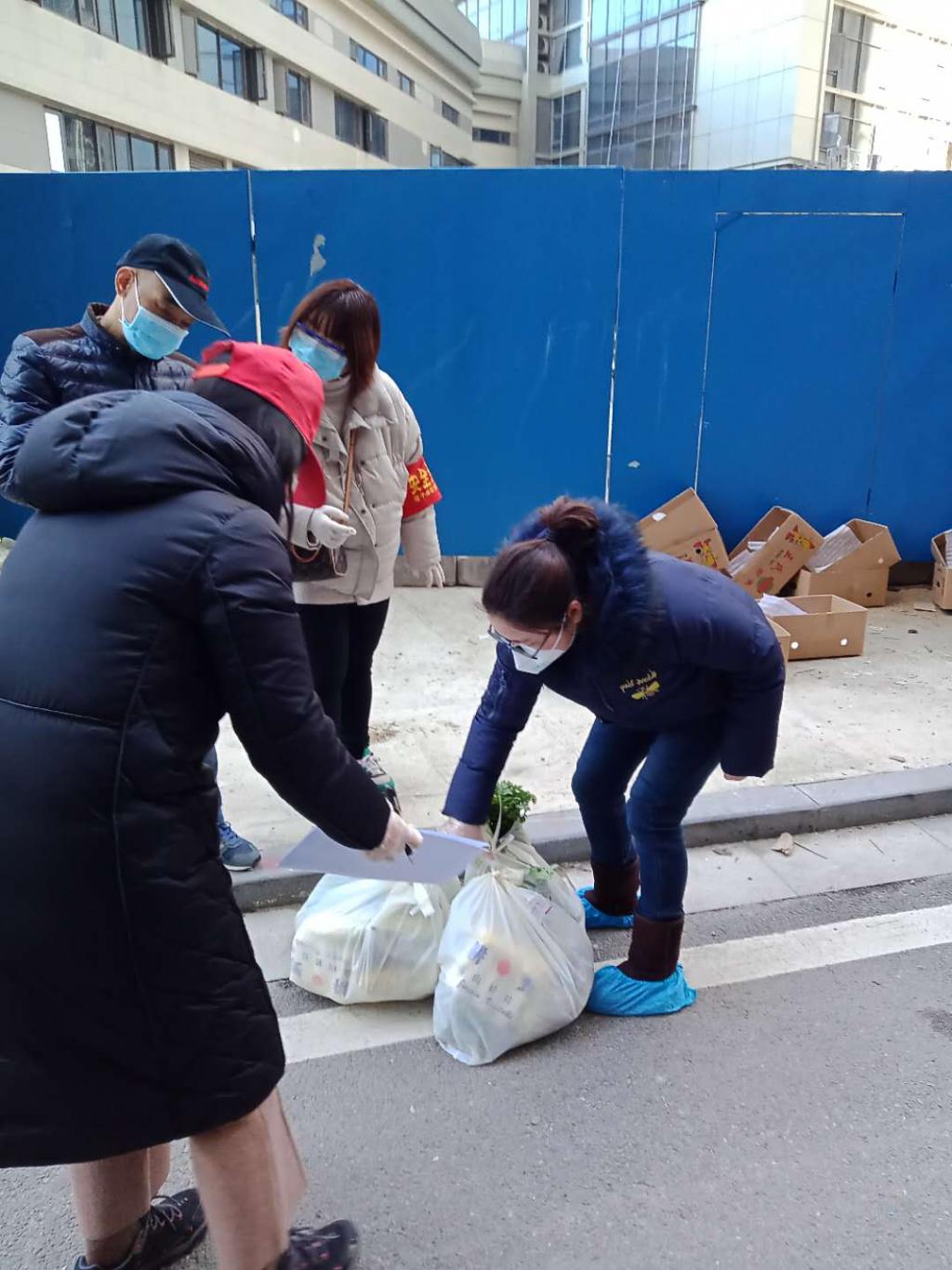 卢涛、梁萧源、刘兆青等老师一边摸排居民信息,一边给不会网购的留守老人送菜。文峥嵘老师在连续几日的电话摸排中,了解到社区中有部分慢性病的老人必须用药物控制病情,立即上报社区后给居民统一购药并细致分发。