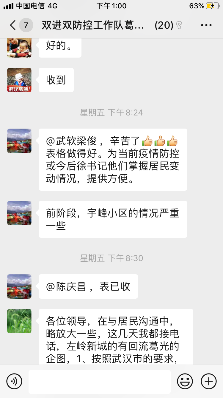 下沉社区的15名非党员教师也不甘落后。王玉枝老师的丈夫日夜奋战在雷神山医院抢建中20多天不曾回家,家中80多岁的公公婆婆由她照顾,她依然主动请缨下沉社区。孙延洲老师在老家接到学校通知后,立刻办理相关手续,平时两小时的路程,整整开了11个小时才到汉,只为尽快加入到战斗中去。夏文婷老师在家中照顾病人和年幼的孩子,也第一时间报名下沉社区,她说“线下排查工作无法参与,但所有能在网上、电话里能解决的工作我都愿意承担。”