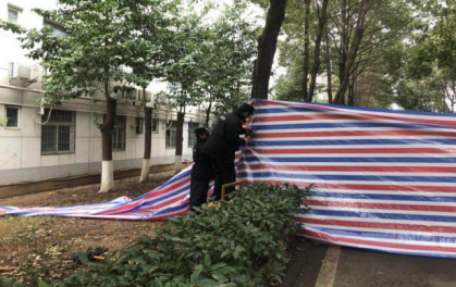 他们战斗在防疫隔离区建设一线,遇到困难绝不退缩。陈文强、陈秋劲、陈荣华连续7天六夜奋战在一线,带领保卫处人员和校卫队高效完成各项任务;王文革老师撑着病体坚持到场,和年轻的同志们一起战斗;梁杨老师的父亲患病正在做透析,在交通不畅的情况下,仍然每天骑自行车到校;甘泉老师的爱人奋战在医院一线,接到学校任务后,他把两个年幼的孩子留在家赶来学校;方立老师在执行任务时受伤,第二天仍旧拄着拐杖到达现场;校保卫队成员随叫随到,运输、搬运、发放,哪里需要在哪里,长期汗如雨下。