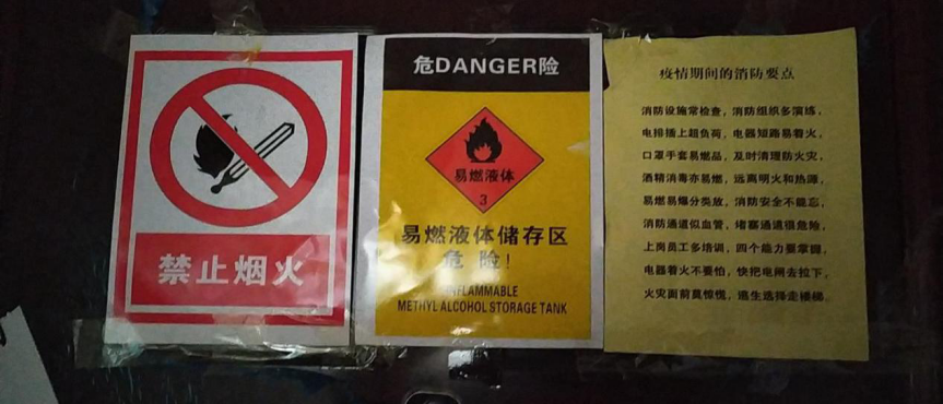 对防疫物资进行分类储存、张贴警示标示、配备消防设备