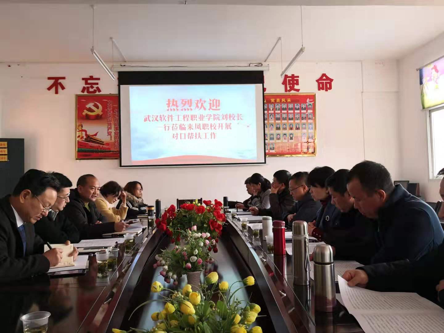 (通讯员 杨国桢)为了让主题教育推动脱贫攻坚不断走深走实,以脱贫攻坚检验主题教育成效,12月13日,校长刘前信率组织人事处、高职教务处、电子工程学院、汽车工程学院相关负责人及专业教师前往恩施州来凤县开展结对帮扶工作。
