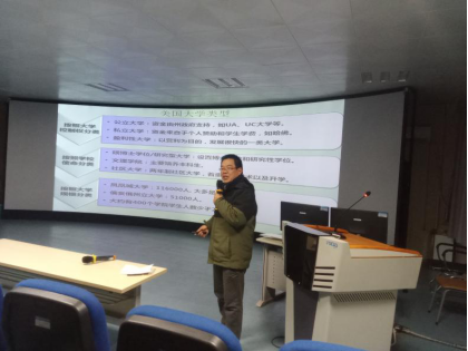 讲座伊始,梅勇老师打破常规,用流畅的英语与大家交流美式口语短语,如,“My bad!”表示“我错了”,“That's interesting”暗含“呵呵”之意等,这些表达极大地吸引了学生的兴趣。随后,梅老师转向讲座的核心内容,一一阐述美国大学数量及分布、美国人的名校情结、美国大学生考评等办学概况,对中美教育之间的差异进行深入比较,并分析背后深层次的原因,使学生对中美两国的教育有了更为深入、全面的了解。梅老师还特意为商务英语专业的同学提供相关英语学习网上资料信息,交流英语学习心得。在场的同学们沉醉在梅老师精彩幽默的讲座中,收获满满。
