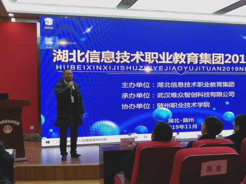 开幕式上,湖北信息技术职业教育集团理事长王路群教授、随州职业技术学院党委书记李德荣及武汉唯众智创科技有限公司董事长辜渝傧分别致辞。在会议学术讲座板块中,华中师范大学计算机学院赵甫哲博士以《价值互联网时代的区块链技术应用》开场,深入解读了区块链技术的应用。随后十余位信息技术职业教育专家、企业技术专家分别从人工智能技术服务专业人才培养体系研究、“1+X 证书制度”下的高职教育教学改革、区块链技术及产业创新发展与高等职业教育的融合、信息技术类专业课程思政教学设计等方面作了精彩报告。